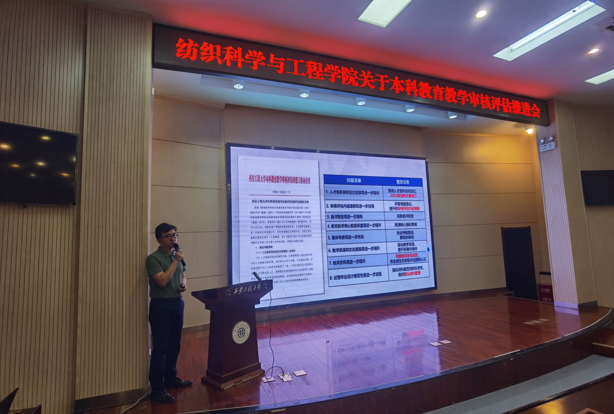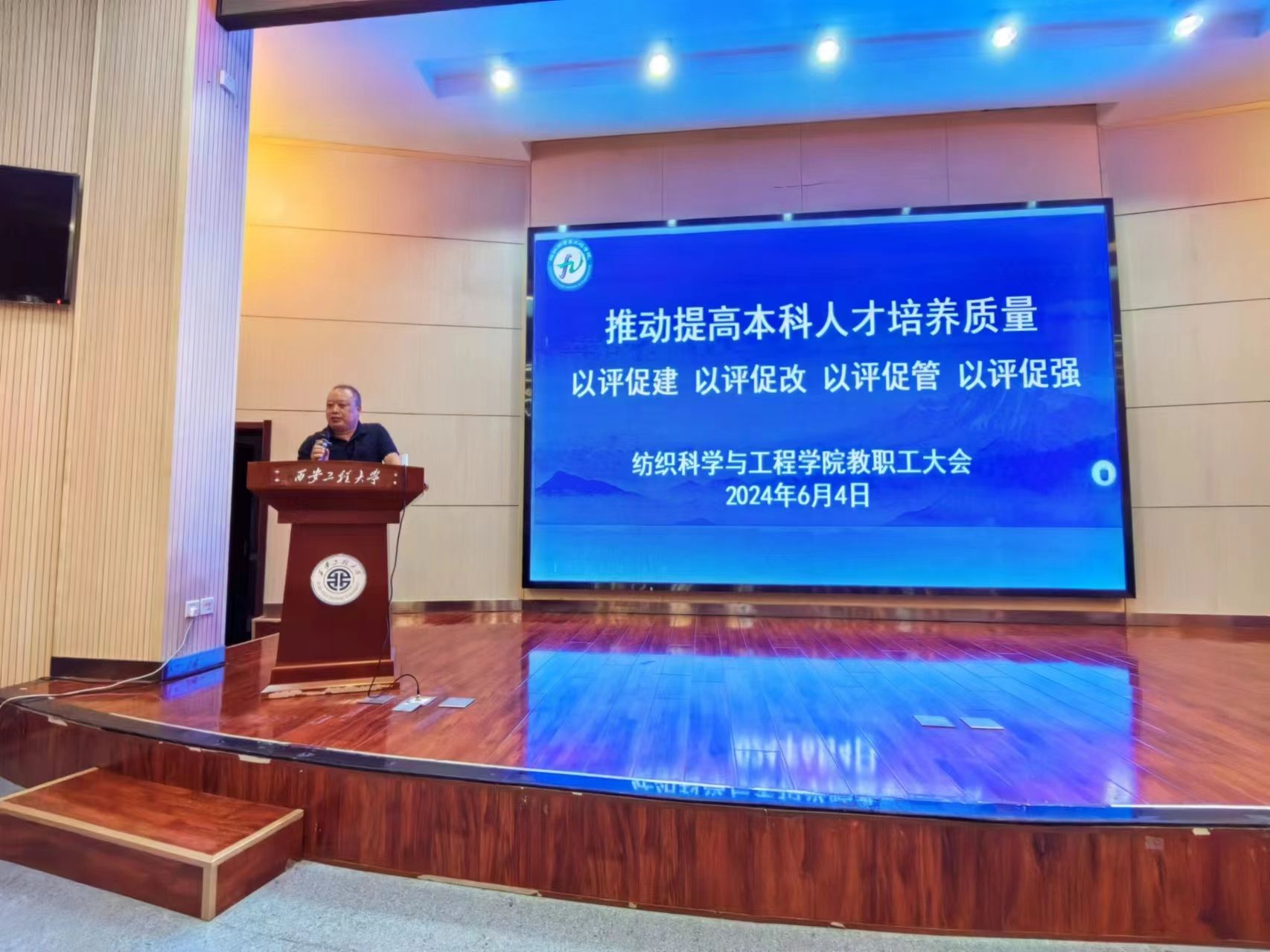 纺织学院党委书记李伟部署了党纪学习教育、本科教育教学审核评估、师风师德、教学活动与课堂管理等工作。他对全院教职工提出四个要求:要求教学管理岗位人员加强日常管理和教学督导;要求专职教师明确任务,强化教风;要求辅导员组织好学生,加强学风建设;要求全院教职员工高度重视,有序开展各项迎评促建工作。把审核评估工作与深化教学改革紧密结合,做到真正意义上的“以评促建、以评促改、以评促管、以评促强”。
