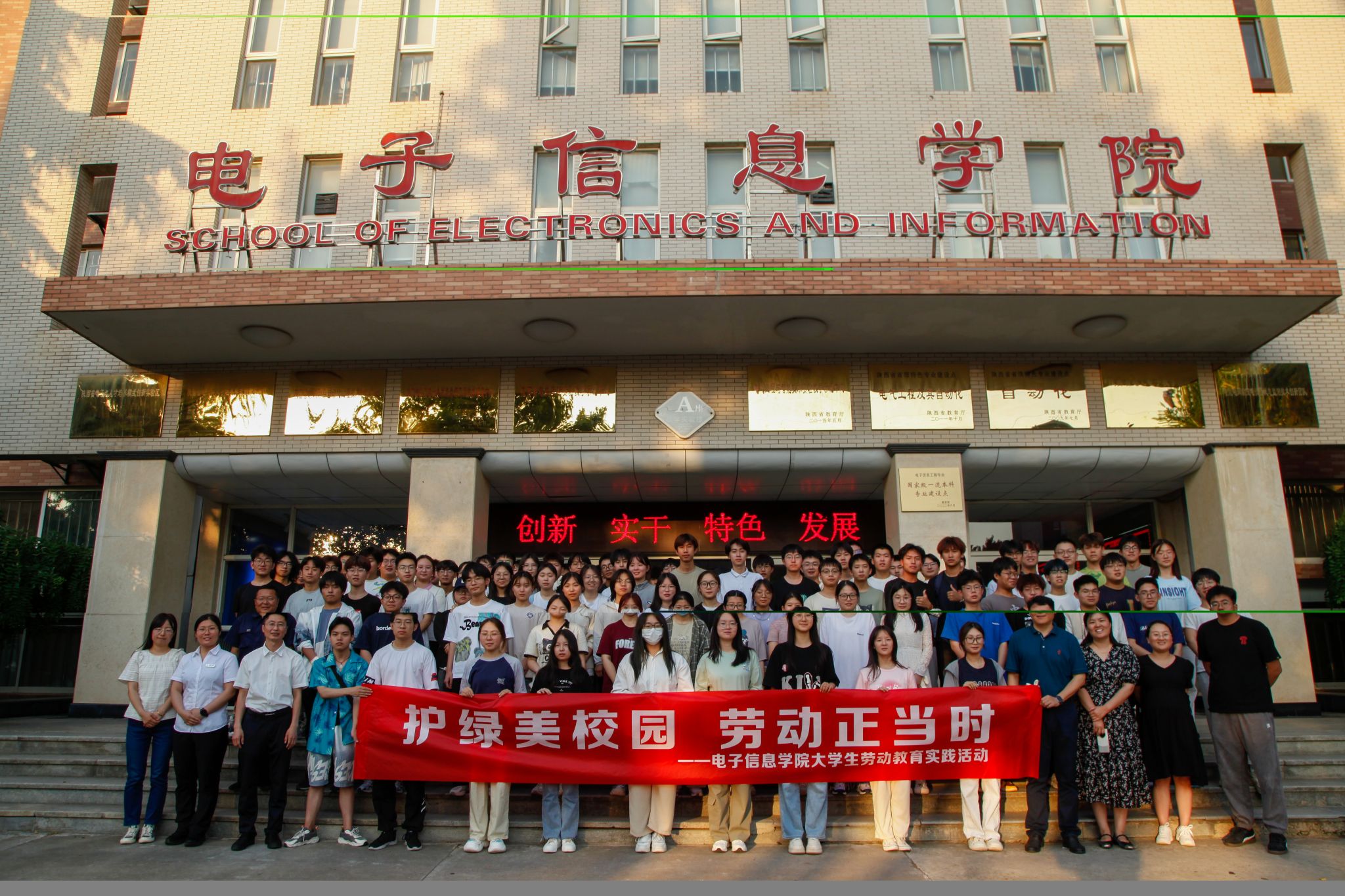 本次劳动育人实践活动是为全面贯彻落实习近平总书记关于劳动教育的重要指示批示精神,积极落实中共中央、国务院《关于全面加强新时代大中小学劳动教育的意见》要求,高质量迎接本科教育教学审核评估,切实提升我院学生劳动能力和素养,彰显新时代大学生的责任与担当,推进“五育并举”有机融合务实之举。接下来,学院将进一步探索实施新时代劳动育人育心的科学路径,磨炼电信学子吃苦耐劳、奋斗笃行的品质,为“三全育人”与“五育并举”的协同融合发展蓄势赋能。