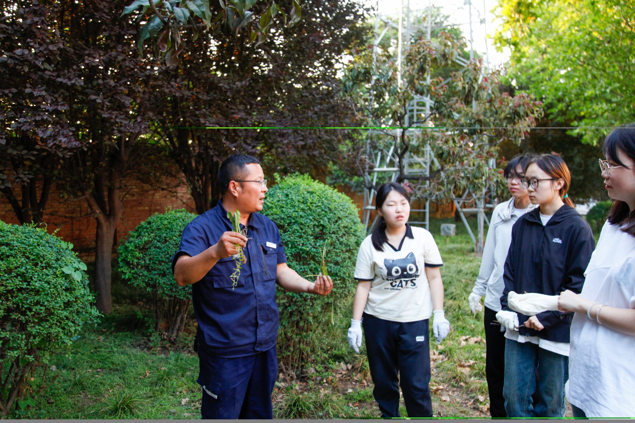 在劳动实践过程中,同学们分成10组有序分布在学院绿化责任区,本次劳动实践指导老师刘会华经理、靳宏伟主任为每组“园丁”进行了详细生动的现场教学,教会大家如何除草之外,还为大家分享了绿化知识,“园丁们”也不惧热浪、热情高涨、分工明确、团结协作,以认真的潜心学习态度和出色的团队合作精神,有效有速完成了除杂草、垃圾清扫等劳动任务。活动结束后,大家纷纷表示本次劳动实践活动形式新颖,在劳动实践中磨砺意志、锤炼品格,深刻领悟了“崇尚劳动、热爱劳动、辛勤劳动、诚实劳动”的劳动精神。其中参加劳动的2023级人工智能专业段玮莹说:“在劳动中,我和同伴们互相帮助、互相支持,共同完成了任务,这让我深刻体会到团结合作的美好。”