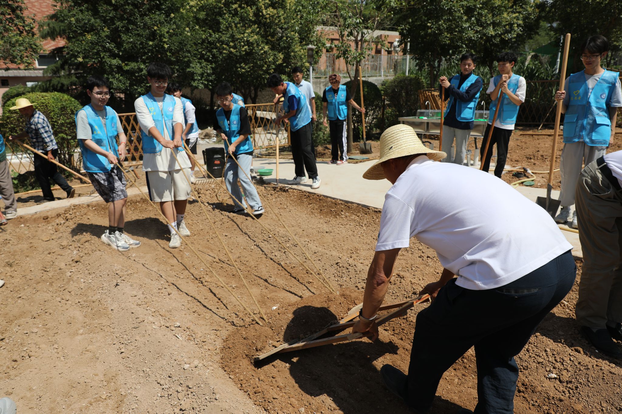 为了落实新时代“五育”融合实践下的劳动教育,强化学生的劳动观念,夯实劳动教育理念,丰富学生的劳动实践,充分发挥传统劳动项目的育人功能,学校因地制宜、就地取材,开辟出一片空地作为学校劳动实践教育基地,6月11日下午,机电工程学院组织部分师生,在学校的大学生劳动教育实践基地“耕读小园”开园之际,参与种植体验活动,组织学生到劳动基地从事农事劳动,让学生在劳动中出力流汗,动手实践,体悟劳动创造生活、劳动创造幸福,学生们亲身体验了耕地、播种、浇水,在火热的天气中同学挥洒汗水忙播种。