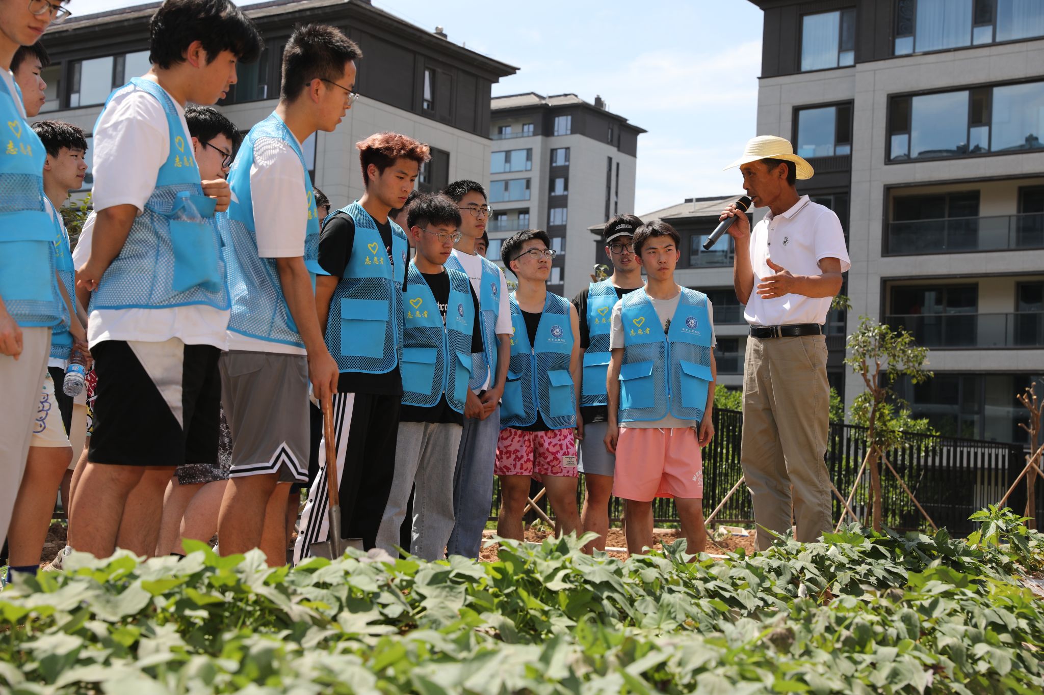 在耕种实践中,参加活动的学生分别在各组导师的指导下,开展土壤翻耕、地块平整、垄土沟谷、移栽幼苗、种子播撒、田间灌溉等劳作体验。每组导师详细演示与说明指导各项工作环节的技巧与要求,参与活动的学生积极热情、分工明确,高效的完成各项劳动任务,在身体力行和互帮互助中激发劳动热情。耕种活动结束后,于增利向学生详细讲授了红薯的生长培育过程,号召学生要扎实学习、勇于实践、珍惜粮食,做崇尚劳动、尊重劳动、热爱劳动的新时代大学生。