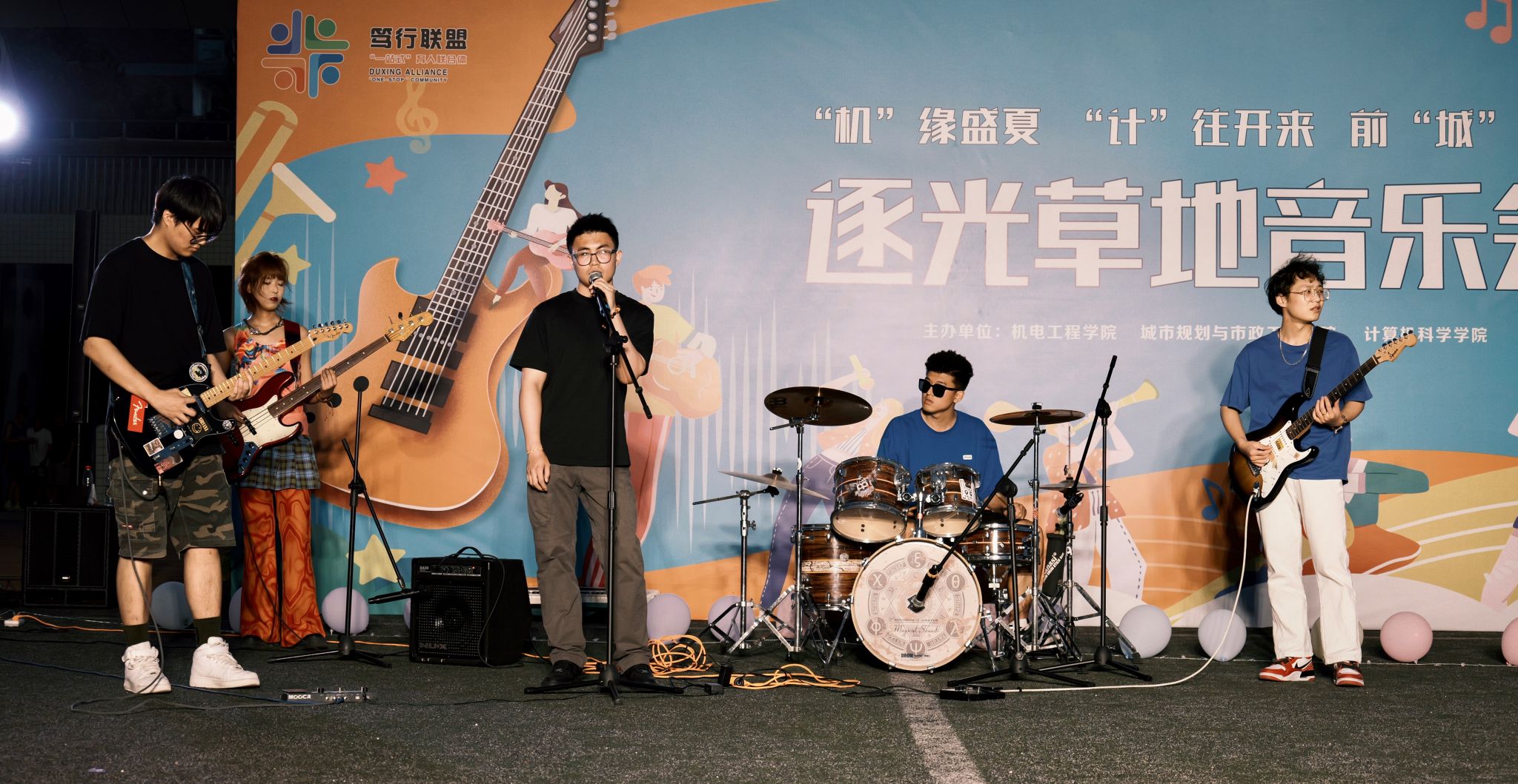 据悉,为积极探索“一站式”学生社区内涵式发展,机电工程学院、计算机科学学院、城市规划与市政工程学院和环境与化学工程学院组成“笃行联盟”,通过跨院协同进一步整合资源、集中优势,通过打造贴近学生成长需求和兴趣的精品活动,合力打造全覆盖、全方位、全环境的“一站式”学生社区育人“趣缘圈”,用活用好学生社区育人场域,促进广大学生自育自律。本次活动,笃行联盟深入贯彻“五育并举”的教育理念,通过逐光草地音乐会,将美育融入思想道德教育、文化知识教育和社会实践教育的全过程,让学生在实践中感受艺术,掌握技能,提高对艺术文化的认识和理解,从而助力学生实现德、智、体、美、劳全面发展。