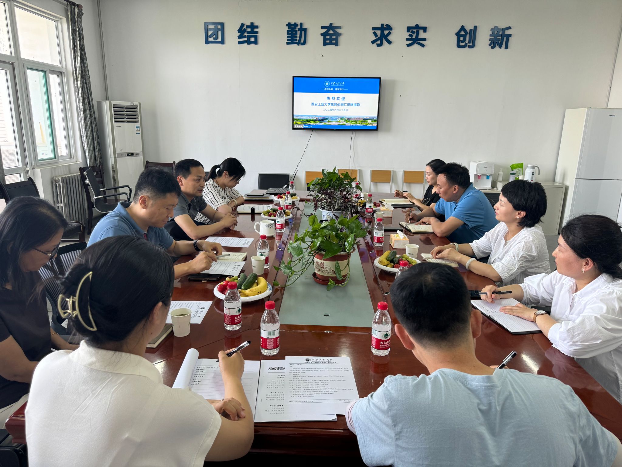 6月25日下午,西安工业大学总务处庞秋红书记一行4人来我校调研交流后勤工作,后勤管理处(集团)处长张峰,副处长刘小钊、闫斐、总经理助理干蕾、综合办公室主任王玲娟、副主任王进参加了调研座谈会。