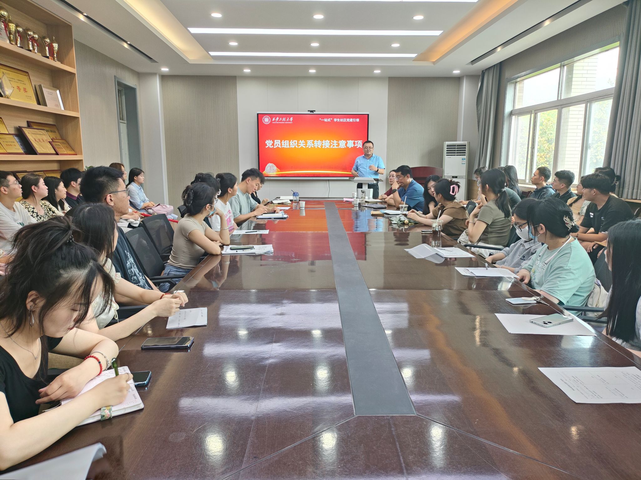 盛夏时节,毕业在即。6月26日下午,人文社会科学学院于临潼校区人文楼326会议室举行“一站式”学生社区“党建引领”——2024届毕业生党员教育大会。人文学院党委书记陈莉霞、党委副书记赵立涛、各学生党支部书记及全体毕业生党员参会。会议由学院组织员王德利主持。