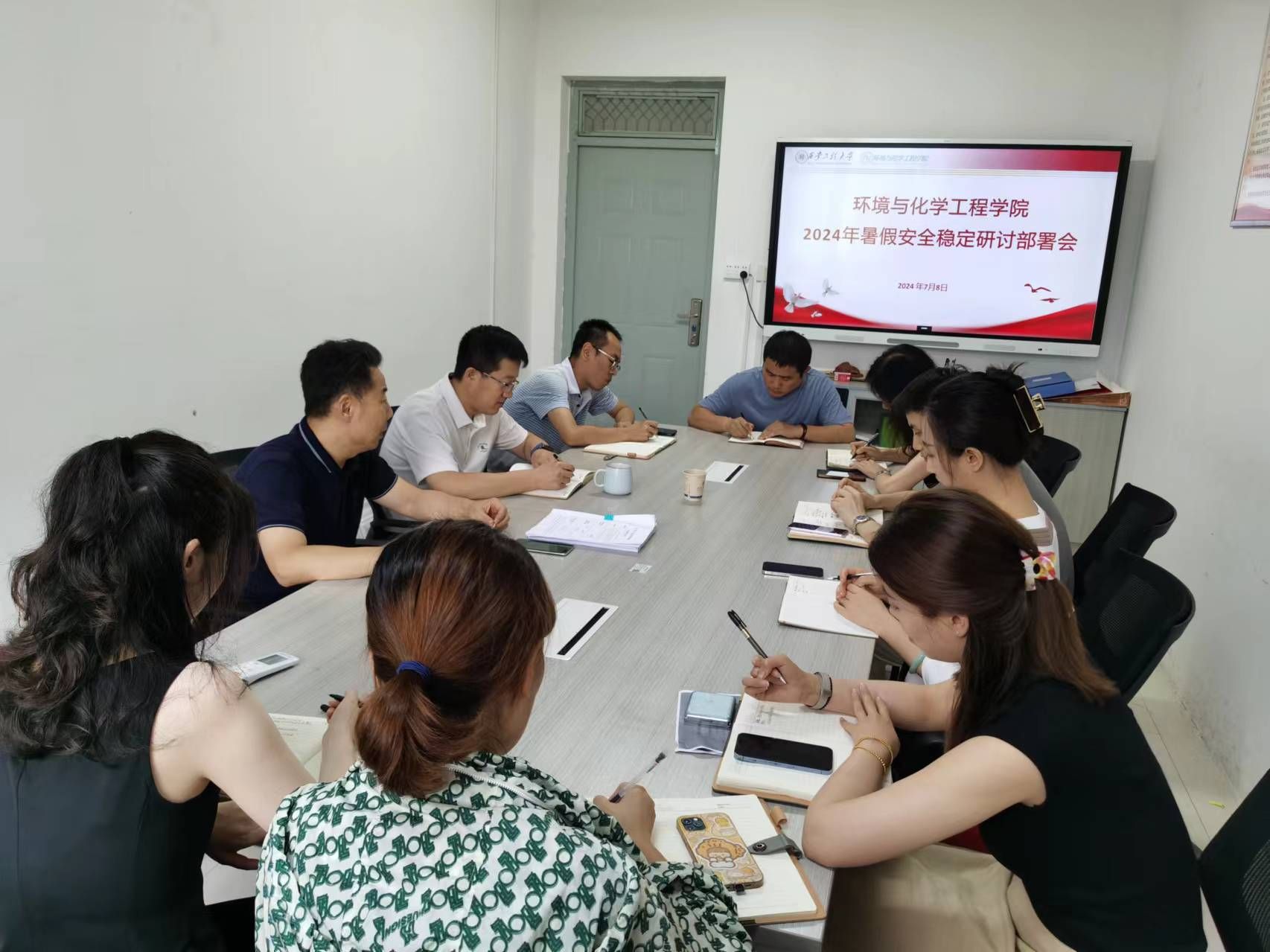 7月8日,环境与化学工程学院在238会议室召开2024年暑假安全稳定研讨部署会。学院党委书记胡西民、副院长(主持工作)武占省、党委副书记林定武、副院长常薇、实验室中心主任于翔和全体辅导员参加会议,会议由胡西民主持。
